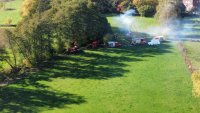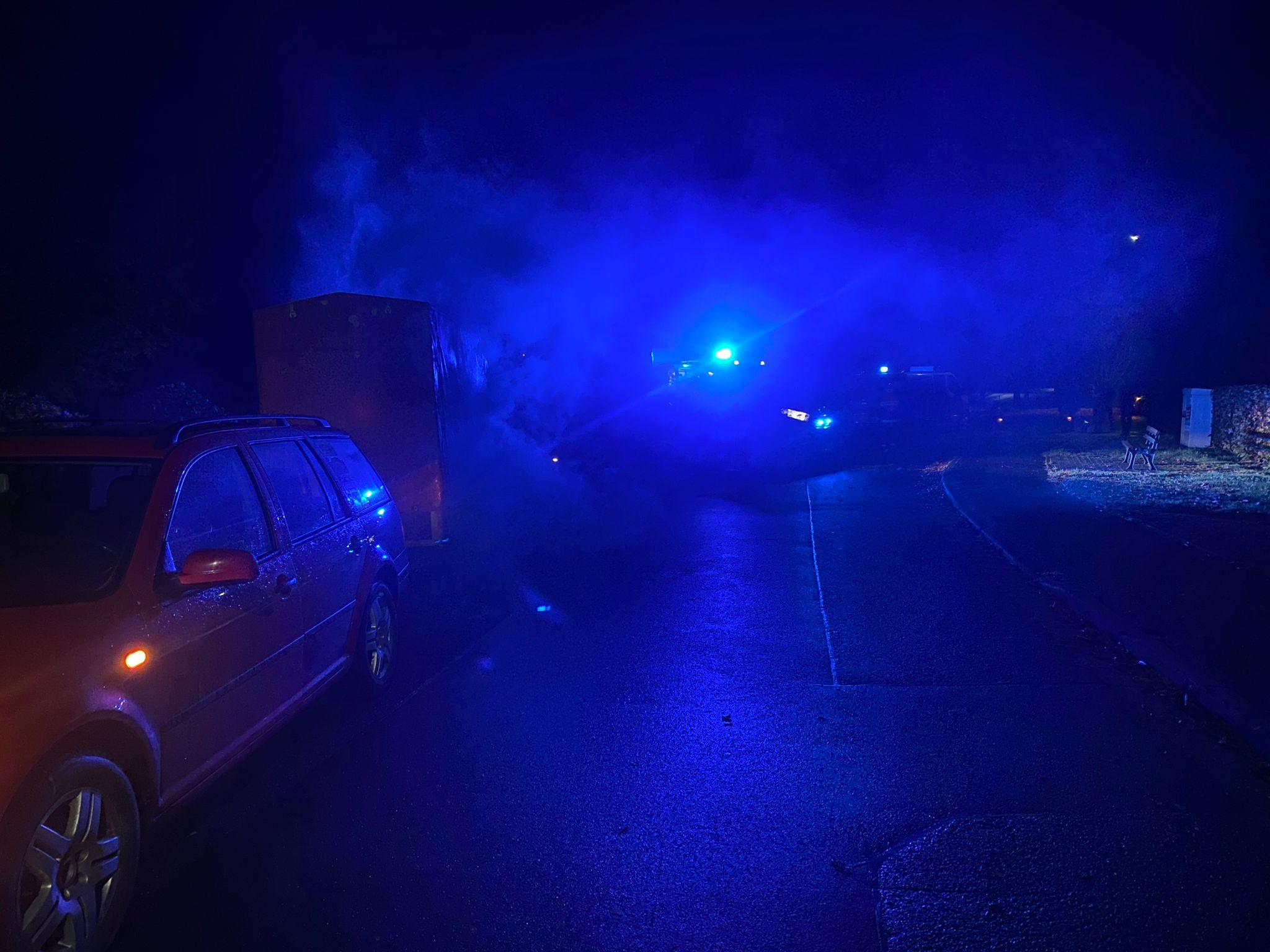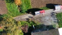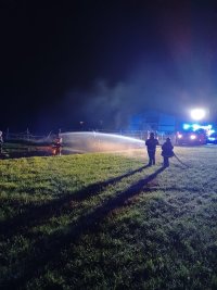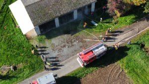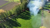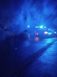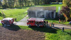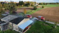 Nach einer Verpuffung eines Ofens, kommt es zu einem Schwelbrand. Die gesamte Maschinenhalle und der angrenzende Aufenthaltsraum sind stark verraucht. Die Feuerwehren werden von einem aufgeregten Eigentümer Empfangen, die Person will immer wieder in den stark verrauchten Bereich rennen, da hier noch zwei weitere Personen vermisst werden.