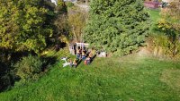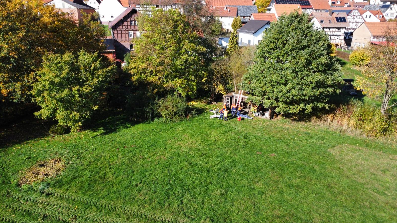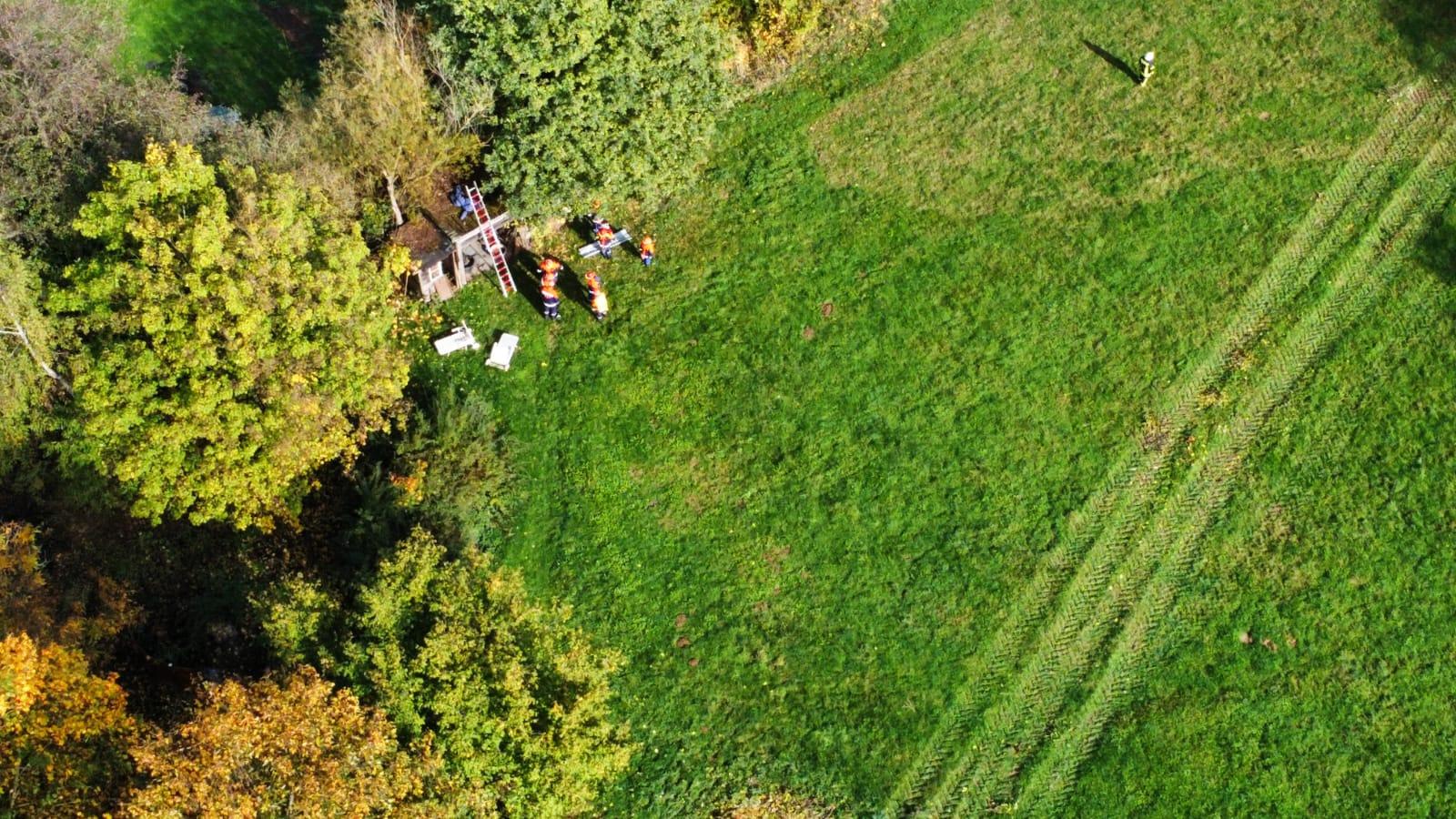 Auf Grund eines Medizinischen Notfall muss eine Person mittels Steckleiter von einem Dach gerettet werden. Durch die Aussage der geretteten Personen muss davon ausgegangen werden, dass sich noch eine weitere, hilflose Person in unmittelbarer Nähe befindet, weshalb der Bereich um das Gebäude, in einem Radius von 500m, abgesucht werden muss.