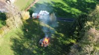 Aufgrund eines technischen Defektes fängt der Traktor von Herrn Müller an zu brennen. Da es ein Erbstück ist, ist Herr Müller sichtlich mitgenommen und muss betreut werden. Die beiden Jugendfeuerwehren Wasenberg und Loshausen sollen zwei C-Rohre vornehmen. Es ist drauf zu achten das der Wasservorrat auf die beiden Fahrzeugtanks begrenzt ist. Eine Wasserentnahme offenes Gewässer gestaltet sich in dem Bereich schwierig.