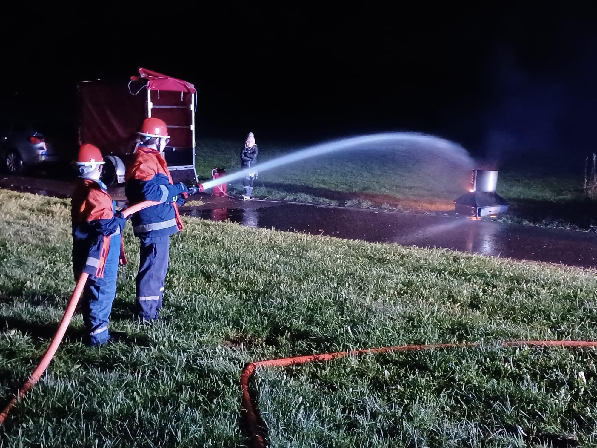 Alamiert wurde die Jugendfeuerwehr mit einer Melderatrappe.
