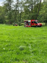Nach der Erkundung wurde entschieden die TS ( Tragkraftspritze ) aus dem TSF W auszubauen und via Fußmarsch zum Fluss zu bringen.