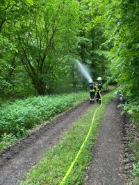 Von dort aus wurden rund 245 Meter B und C Schlauch verlegt und die erste Brandbekämpfung aufgenommen.