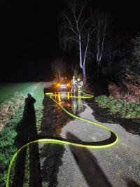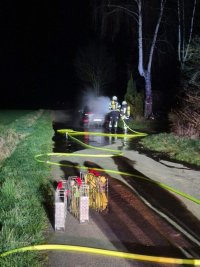 - Der Angriffstrupp ging zur Brandbekämpfung des PKWs unter PA mit dem ersten Rohr vor