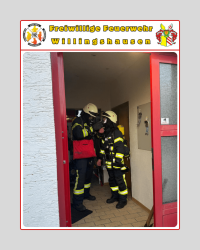 Nachdem der Angriffstrupp die Eingangstür von innen öffnen konnte, nahm er den vorbereiteten Schlauch am ersten Rohr entgegen und begab sich unmittelbar auf die Suche nach der vermissten Person.