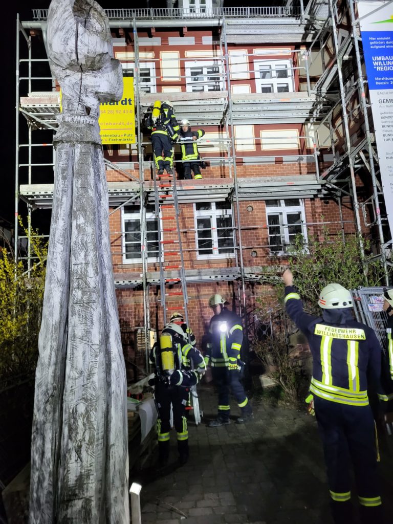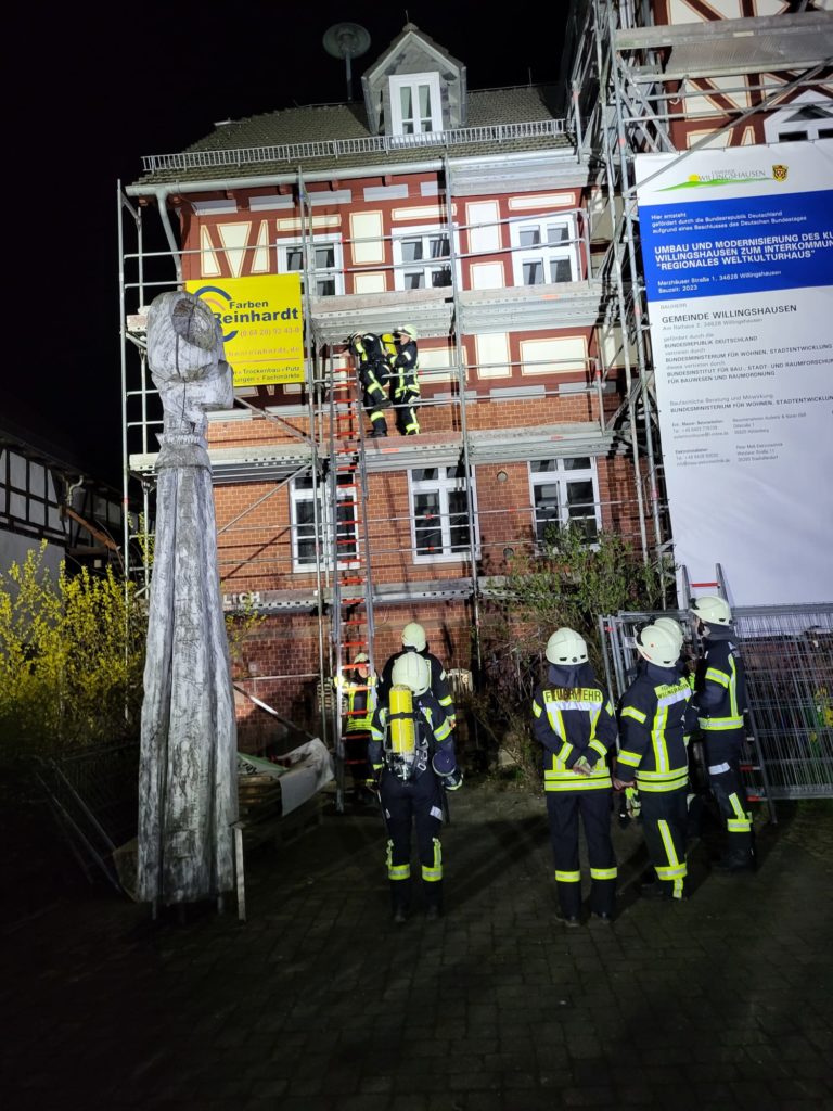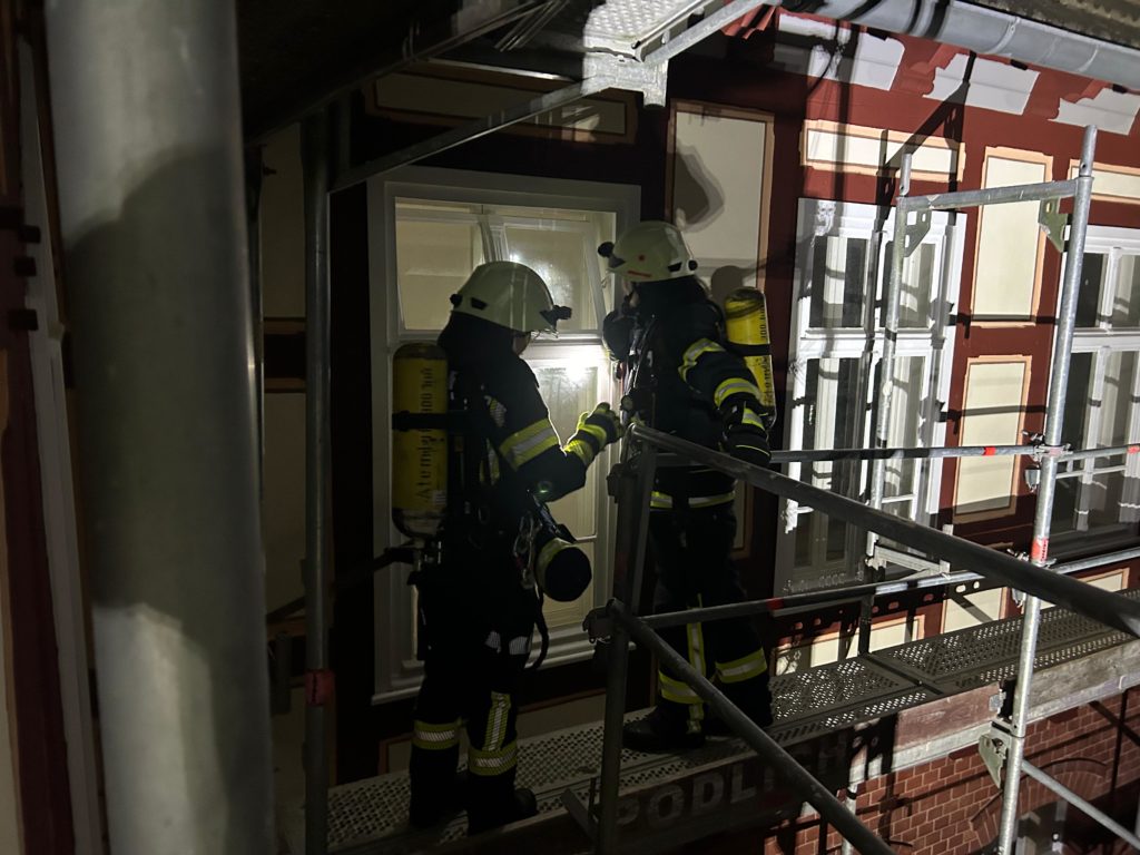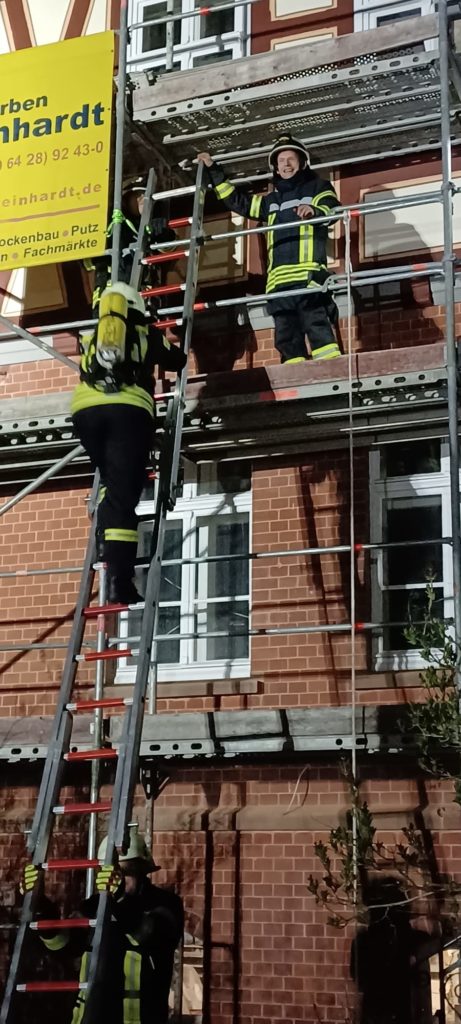Im Anschluss wurde der Löschangriff über das Gerüst eingeleitet.
