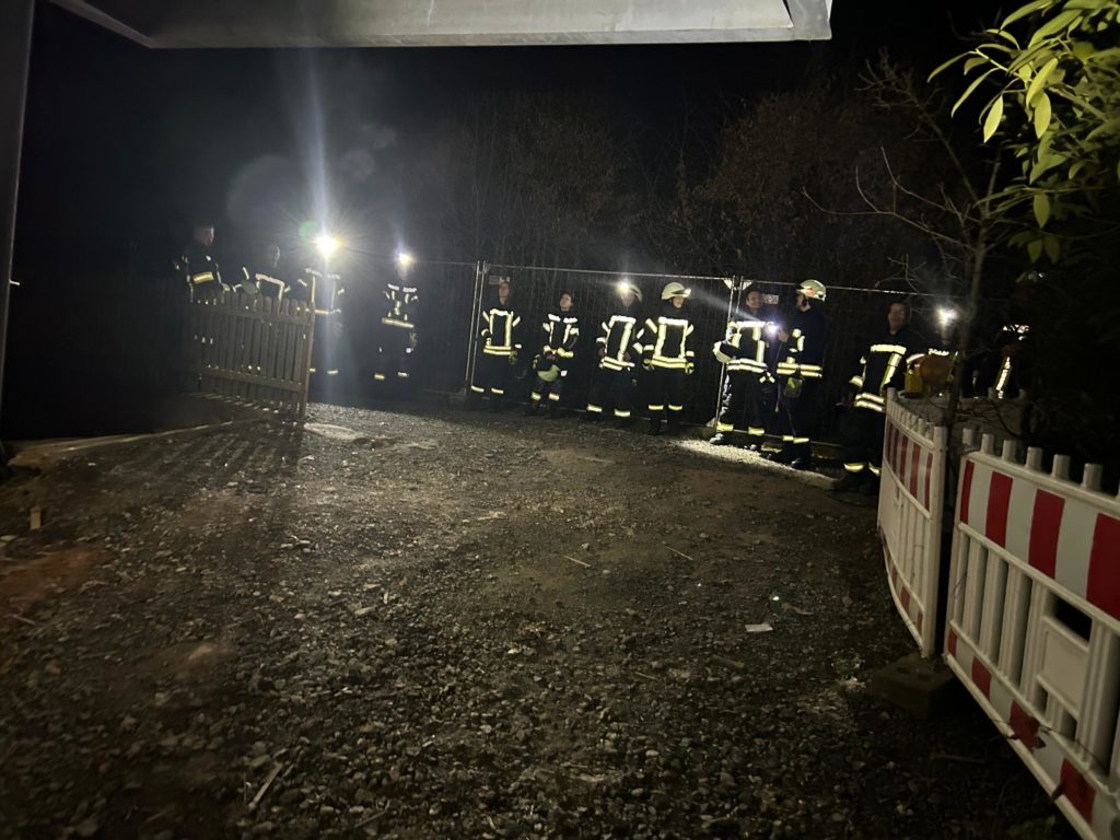 Der Schlauchtrupp und Angriffstrupp positionierten und sicherten die Leiter, während der Wassertrupp den Verteiler und anschließend das Standrohr, zur Wasserversorgung, gesetzt hat.
