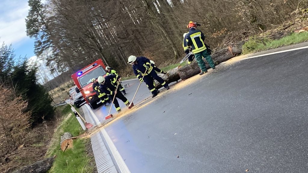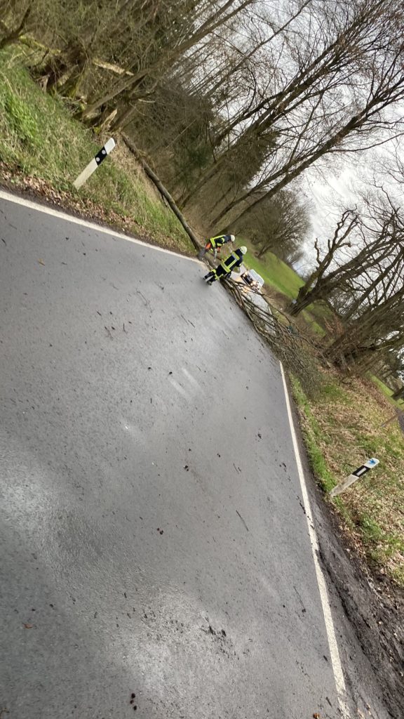 Um 18 Uhr rückten die Kammrad:innen dann zum zweiten mal aus um einen Baum zwischen Willingshausen und Bernsburg zu beseitigen.