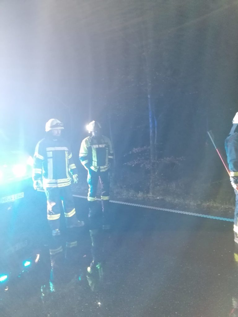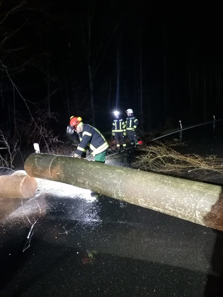 Fünf Kammeraden konnten den Baum schnell beseitigen, sodass die Gefahrenstelle geräumt war und der Verkehr wieder fließen konnte.