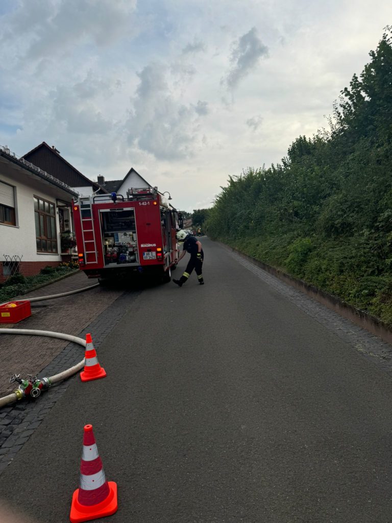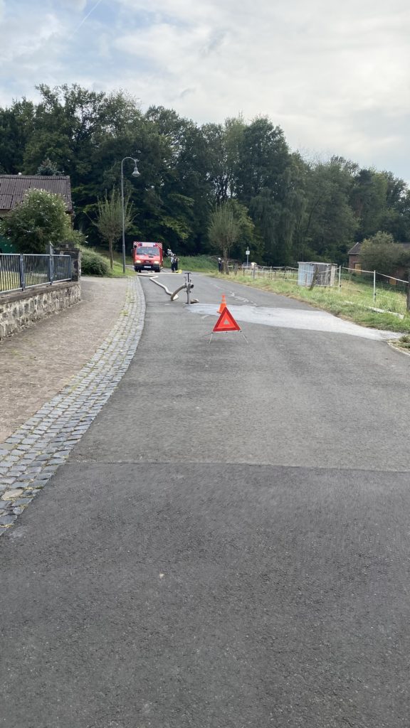 Die Feuerwehr Bernsburg hat den Löschangriff über einen Unterflurhydranten begonnen.