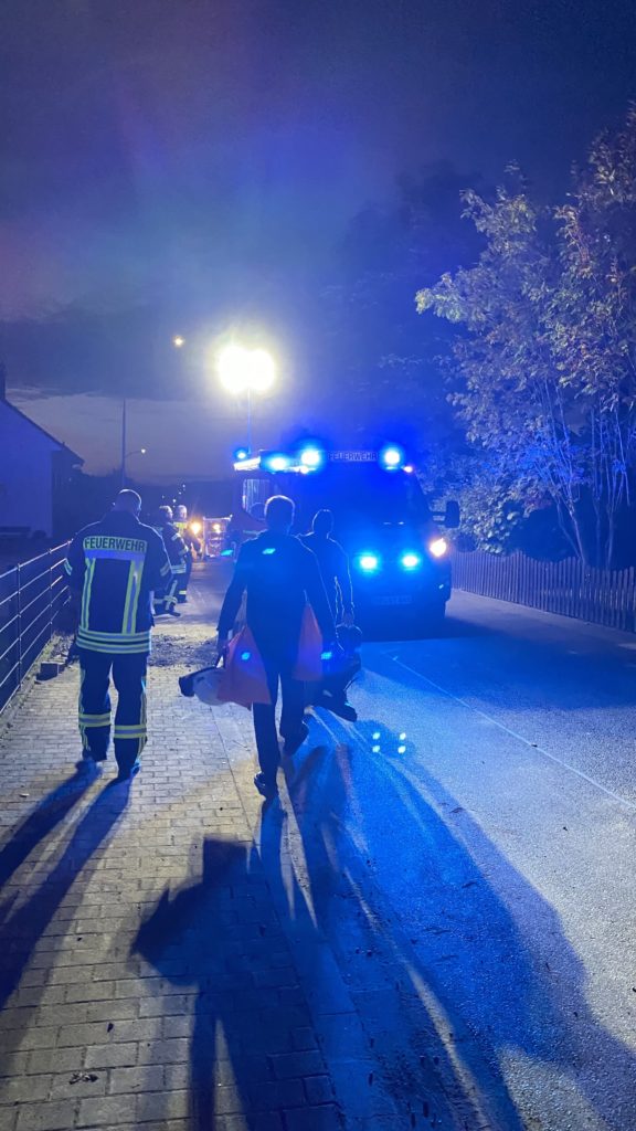 Die Feuerwehr aus Wasenberg war bereits vor Ort und hat unter Atemschutz im Innenangriff die Brandbekämpfung begonnen.