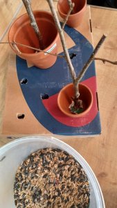 Das Konzept der Vogelfutterstationen ist einfach und zugleich genial. Die Stöcke werden innen an den Töpfen, durch das Entwässerungsloch befestigt, ein Seil zum Aufhängen wird angebracht, und die Töpfe werden abwechselnd mit Vogelfutter und flüssigem Fett gefüllt. Sobald das Fett fest geworden ist, können die Vogelfutterstationen einfach am Seil aufgehängt werden, und die Vögel können in Ruhe ihre Speisen genießen.