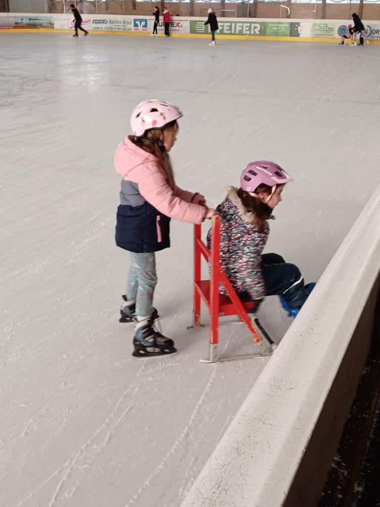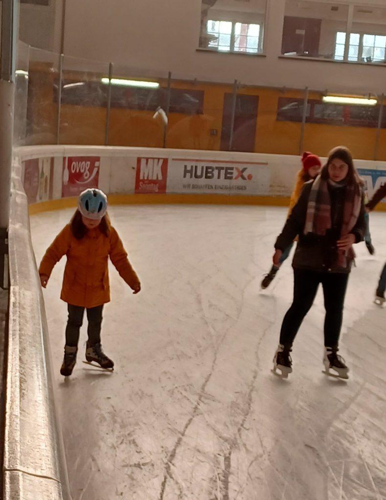 An der Eissporthalle angekommen lag viel Aufregung in der Luft. Alle haben ihre Schlittschuhe bekommen und es ging los aufs Eis.