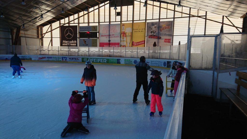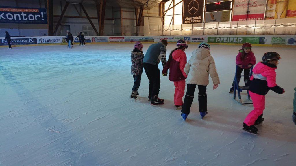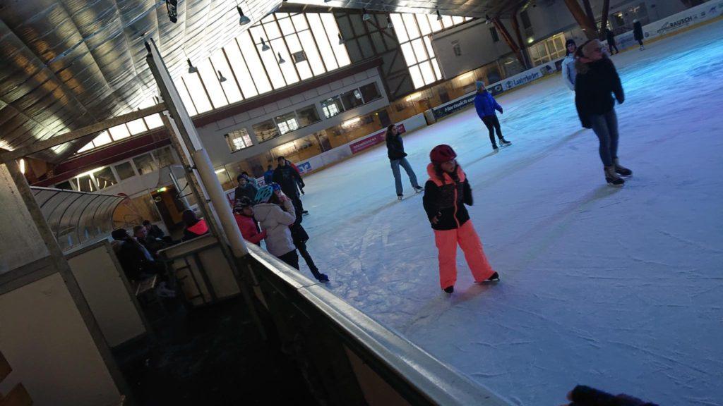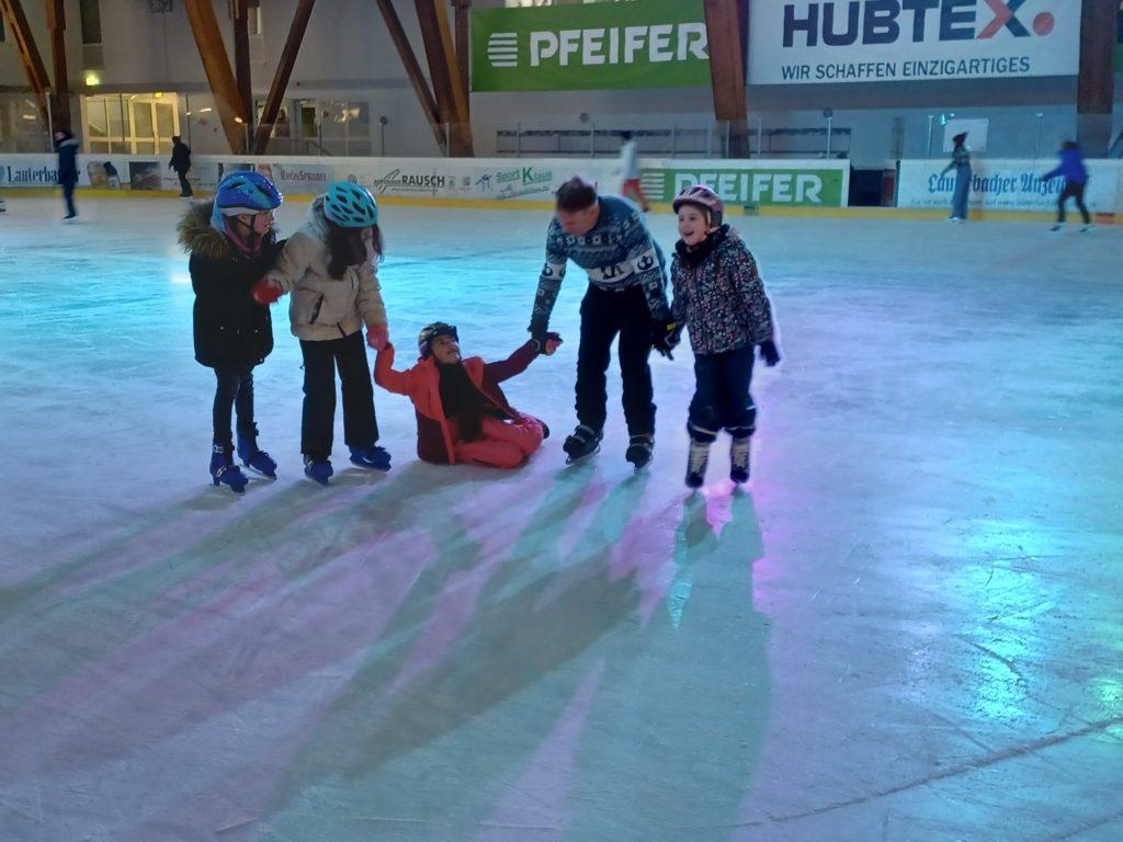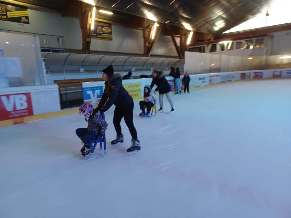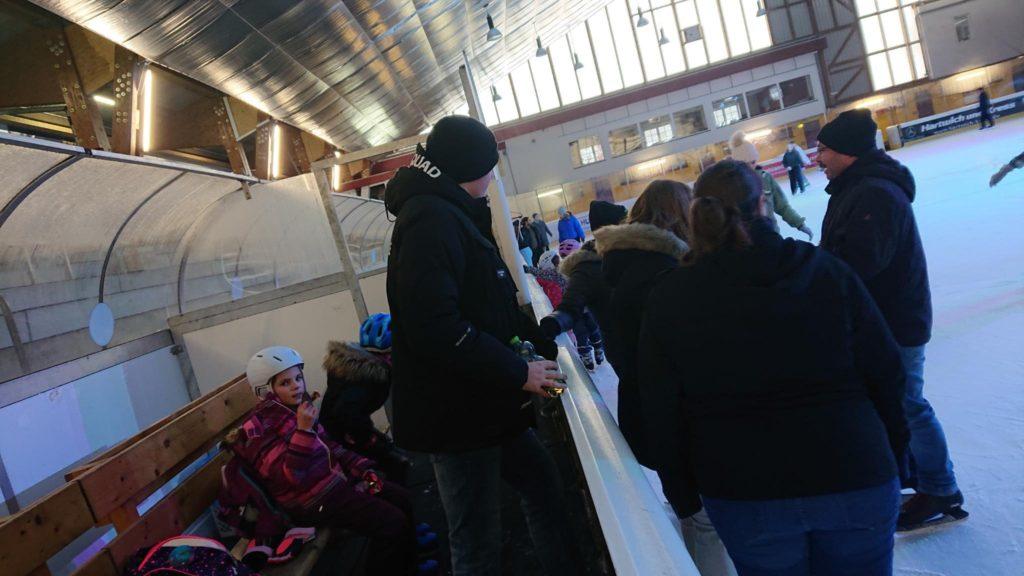 Nachdem alle mit entsprechenden Schlittschuhen ausgestattet waren, ging es direkt und furchtlos aufs Eis.