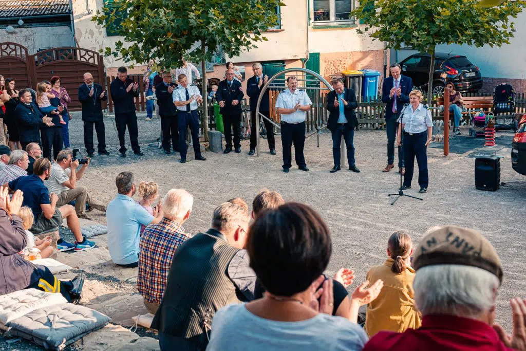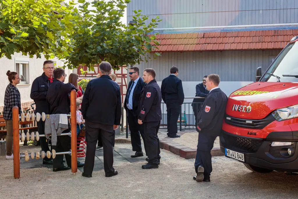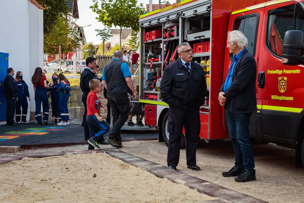 Gemeindebrandinspektor Ralf Lipphardt und Kreisbrandmeister Thomas Schier wurden als Vertreter der anwesenden Feuerwehrkameradinnen und Feuerwehrkameraden herzlich willkommen geheißen. Bürgermeister Vesper dankte dem Wehrführer und den Feuerwehrkameradinnen und –kameraden der Freiwilligen Feuerwehr Willingshausen für die Organisation dieser Übergabe auf dem Mehrgenerationenplatz. Ebenso dankte er dem Land Hessen, den gemeindlichen Gremien und Landrat Winfried Becker für die finanzielle Unterstützung.